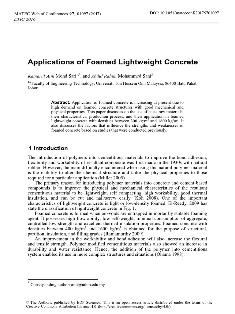 1. D. Aldridge, Introduction to Foamed Concrete: What, Why and How? Use of Foamed