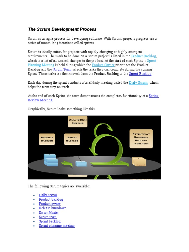Scrum is an agile process for developing software. With Scrum, projects progress via a