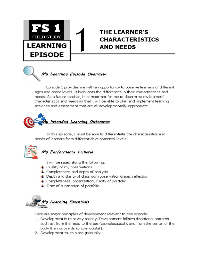 characteristics and needs so that I will be able to plan and implement learning