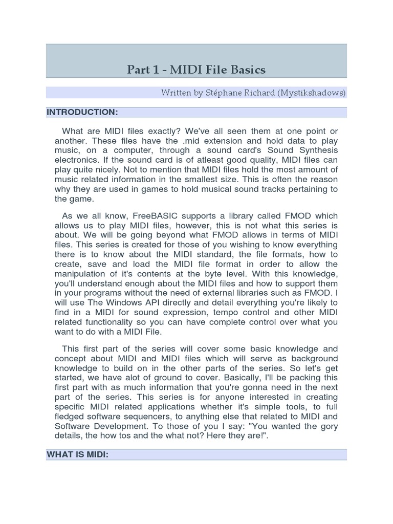 concept about MIDI and MIDI files which will serve as background