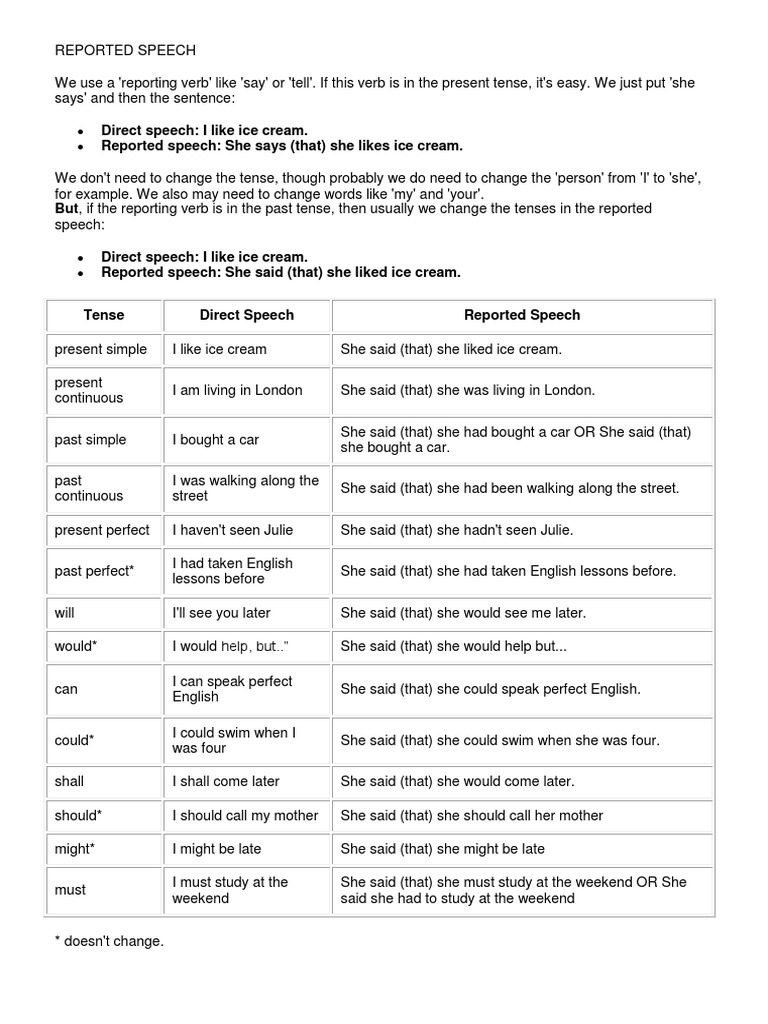But, if the reporting verb is in the past tense, then usually we change the tenses in the reported