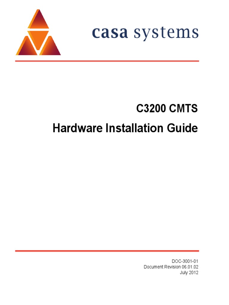 • 06.00.00 — New issue of the Casa Systems – C3200 CMTS Hardware Installation