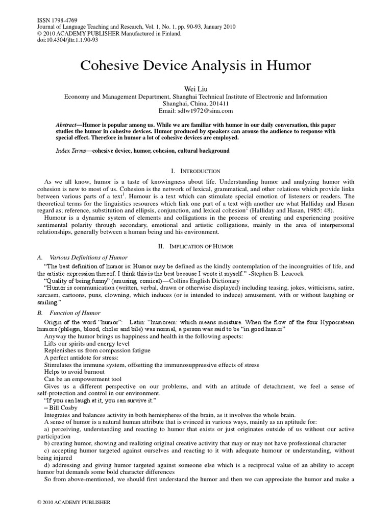 Index Terms―cohesive device, humor, cohesion, cultural background