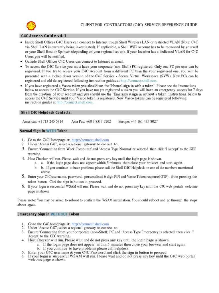• Outside Shell Offices C4C Users can connect to Internet as usual.