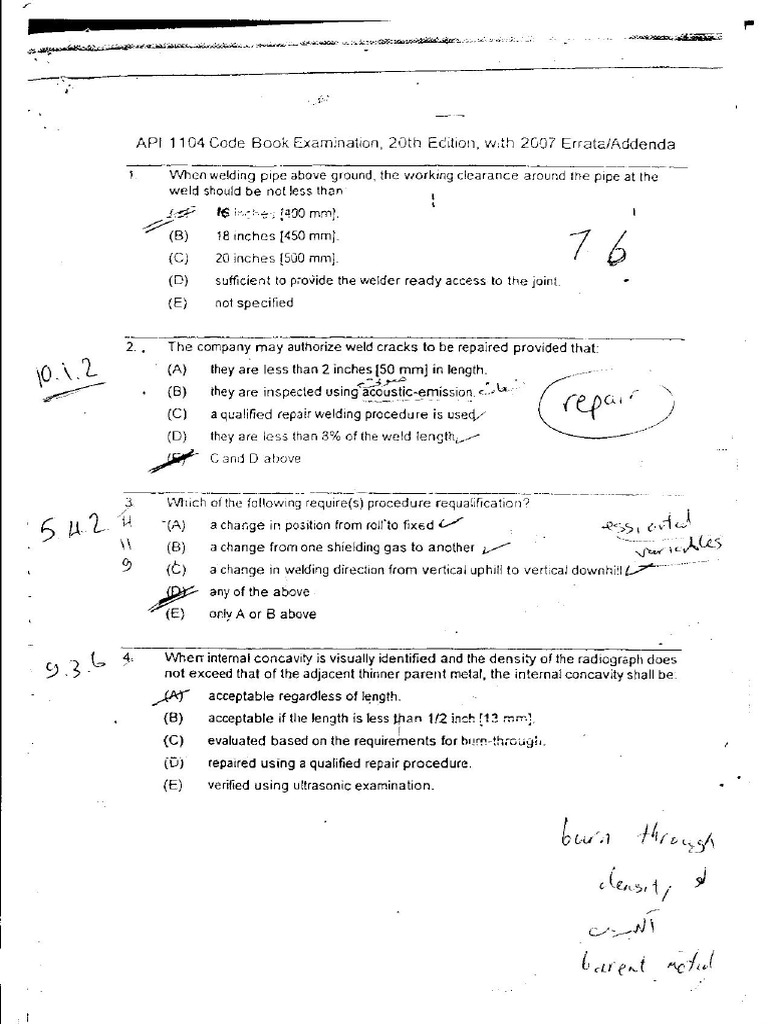 API 1104 Code Book Examination, 20th Ecition, with 2007 Errate/Addenda