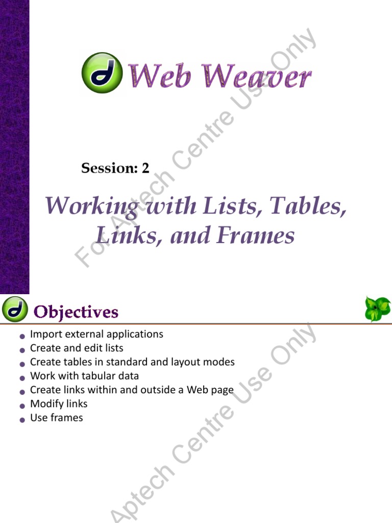 © Aptech Ltd. Working with Lists, Tables, Links, and Frames / Session 2 5