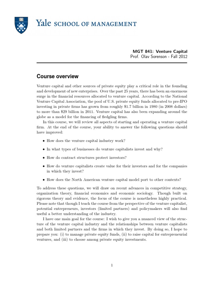 Please note that though I teach the course from the perspective of the venture capitalist,