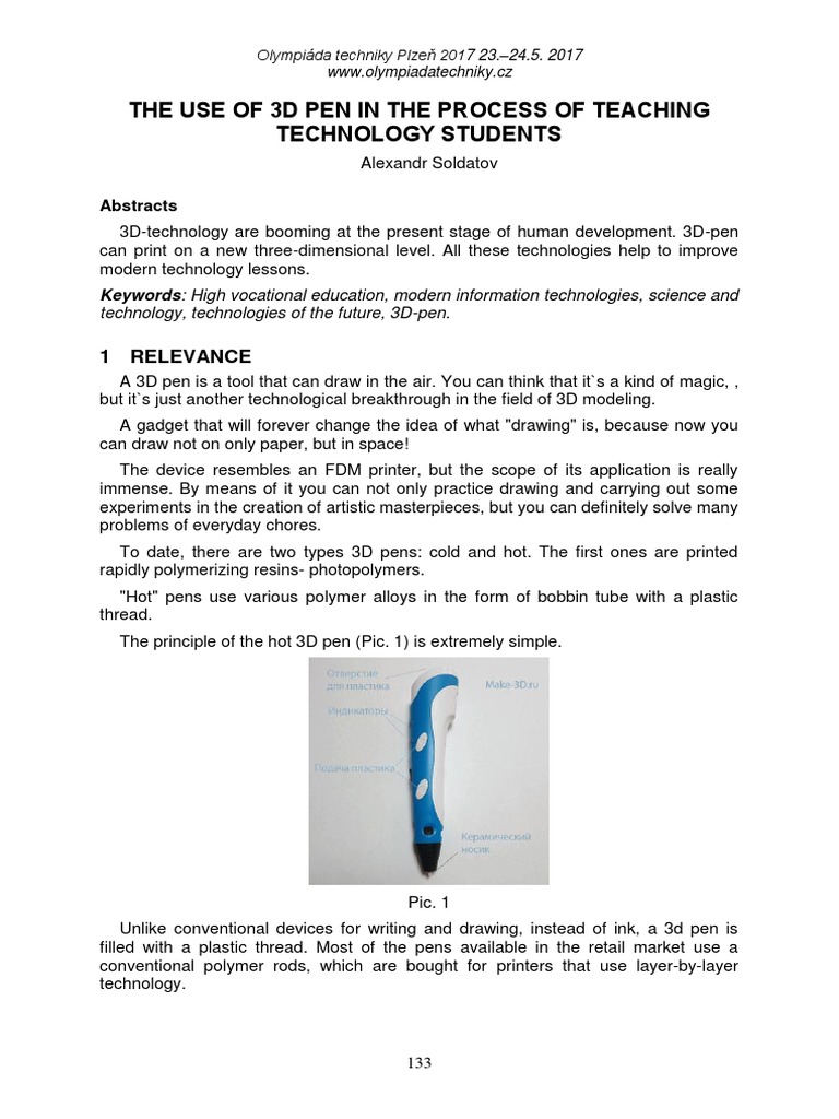THE USE OF 3D PEN IN THE PROCESS OF TEACHING