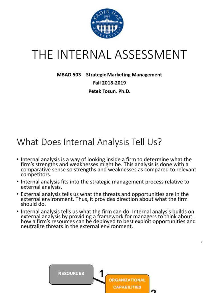 • Internal analysis tells us what the firm can do. Internal analysis builds on