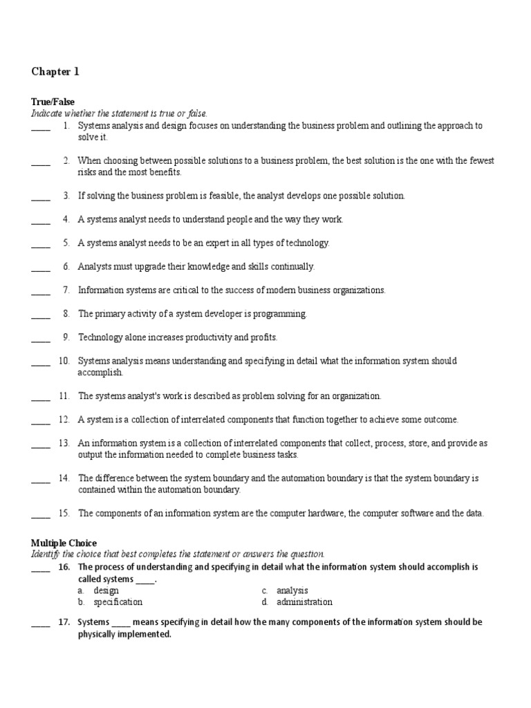 ____ 10. Systems analysis means understanding and specifying in detail what the information system should