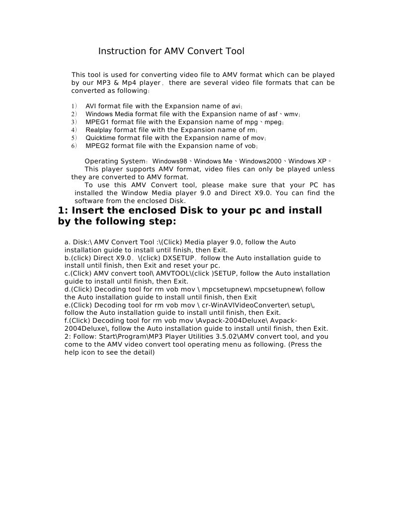 a. Disk:\ AMV Convert Tool :\(Click) Media player 9.0, follow the Auto