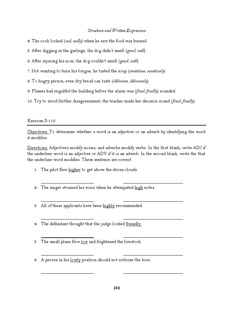 Directions: Although adjectives can modify only nouns (and some verbs), adverbs can modify