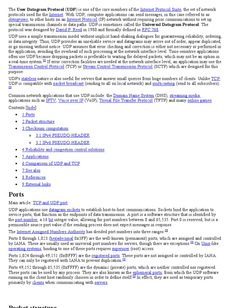 5. ^ Postel, J. (August 1980). RFC 768: User Datagram Protocol. Internet Engineering Task Force. Retrieved