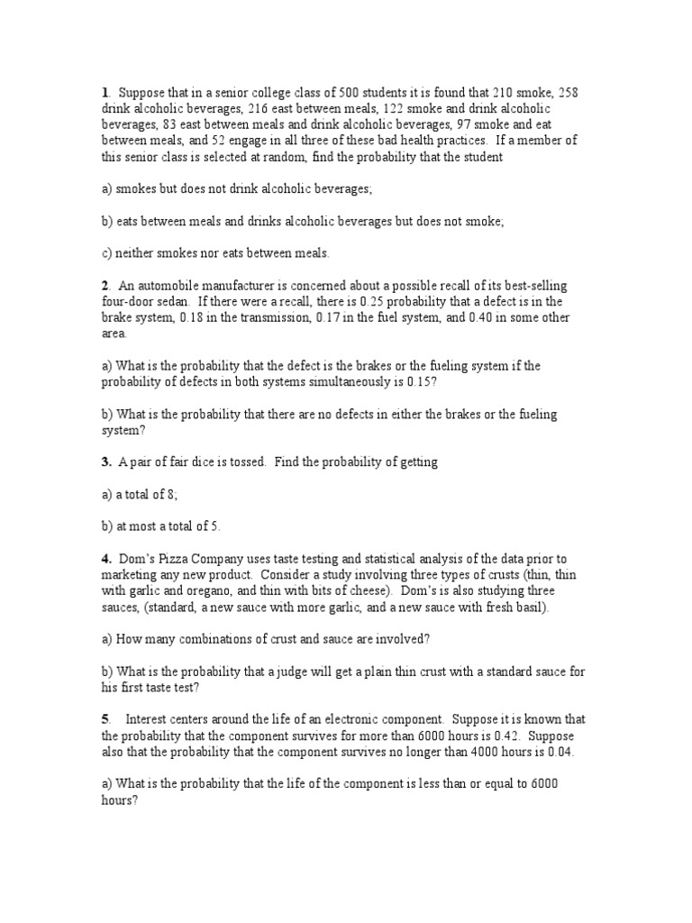 Suppose that in a senior college class of 500 students it is found that 210 smoke, 258
