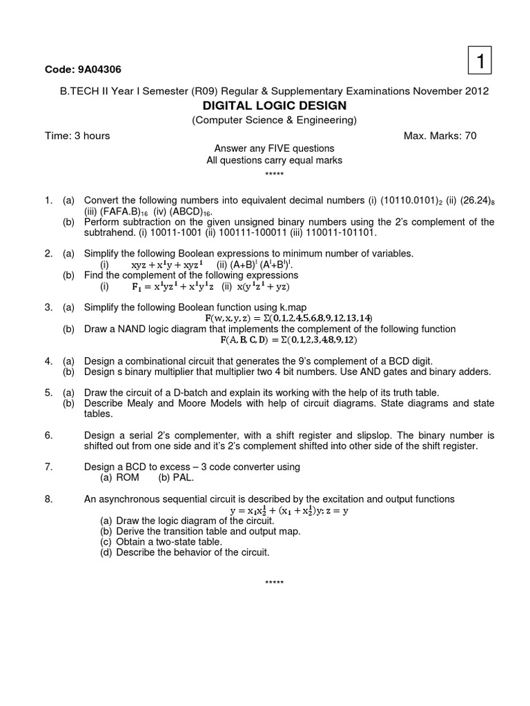 1. (a) Convert the following numbers into equivalent decimal numbers (i) (10110.0101)2 (ii) (26.24)8