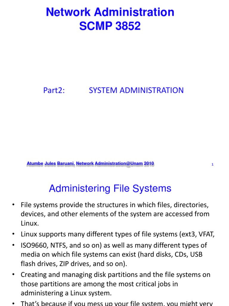 Atumbe Jules Baruani, Network Administration@Unam 2010   1