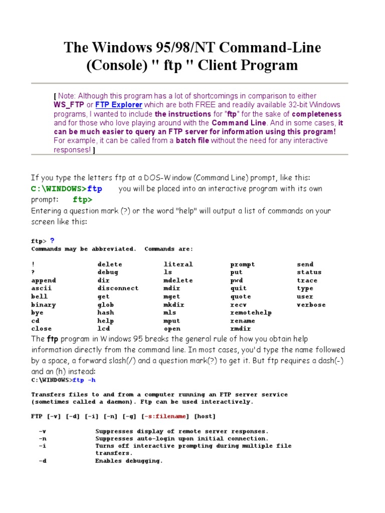 programs, I wanted to include the instructions for "ftp" for the sake of completeness