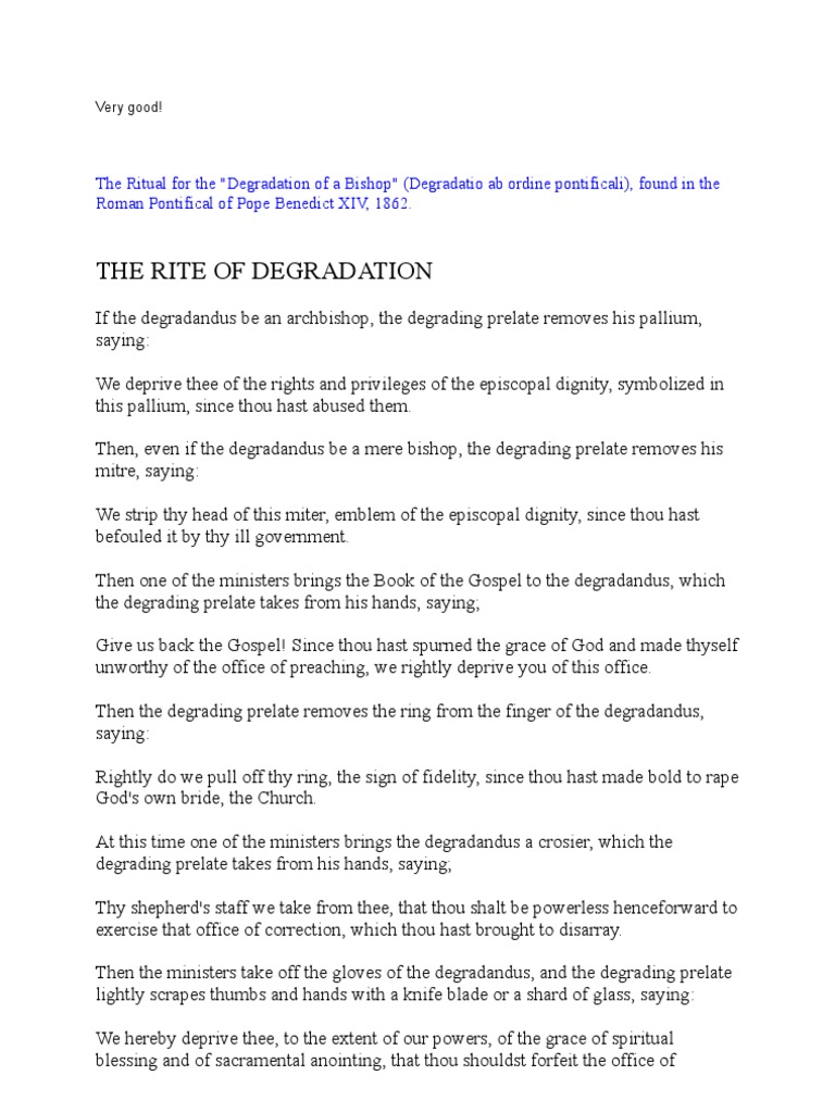 The Ritual for the "Degradation of a Bishop" (Degradatio ab ordine pontificali), found in the