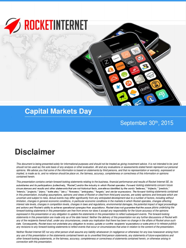 This presentation contains certain forward-looking statements relating to the business, financial performance and results of Rocket Internet SE, its