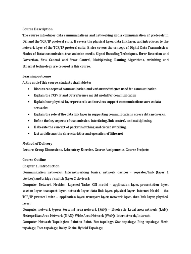 OSI and the TCP/IP protocol suite. It covers the physical layer, data link layer, and introduces to the