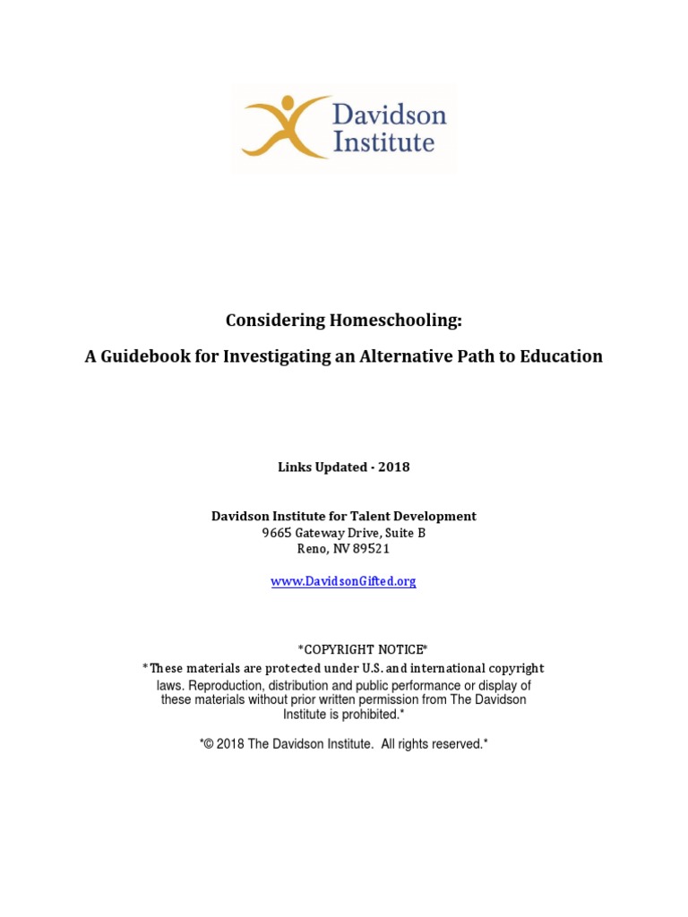 West, Cindy. (2012). Homeschooling Gifted and Advanced Learners. Waco, Texas: Prufrock