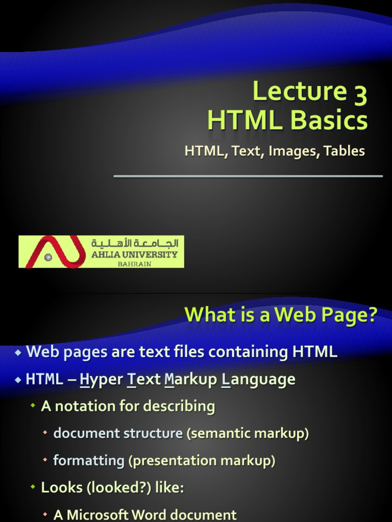HTML, Text, Images, Tables