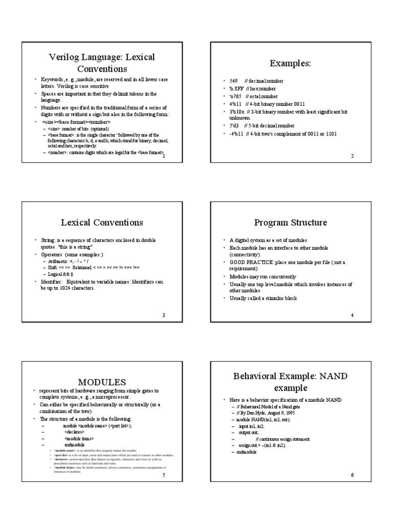 • The structure of a module is the following: – module NAND(in1, in2, out);