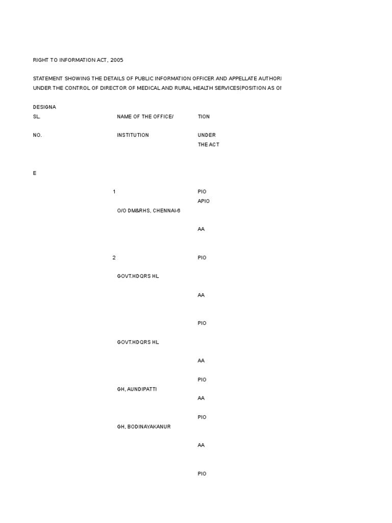 STATEMENT SHOWING THE DETAILS OF PUBLIC INFORMATION OFFICER AND APPELLATE AUTHORITY IN THE GOVERNMENT MEDICAL INSTITU
