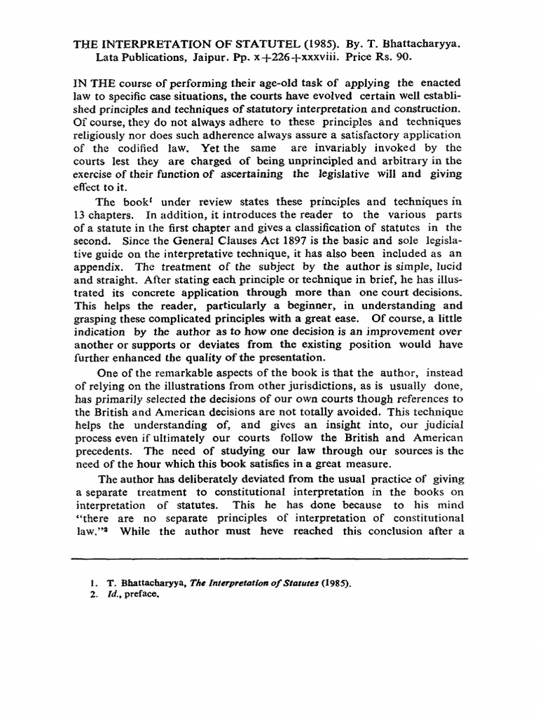 THE INTERPRETATION OF STATUTEL (1985). By. T. Bhattacharyya.
