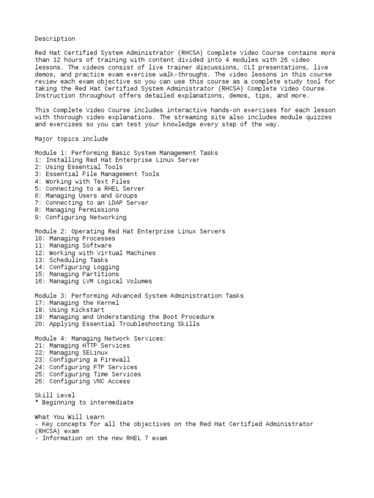Red Hat Certified System Administrator (RHCSA) Complete Video Course contains more