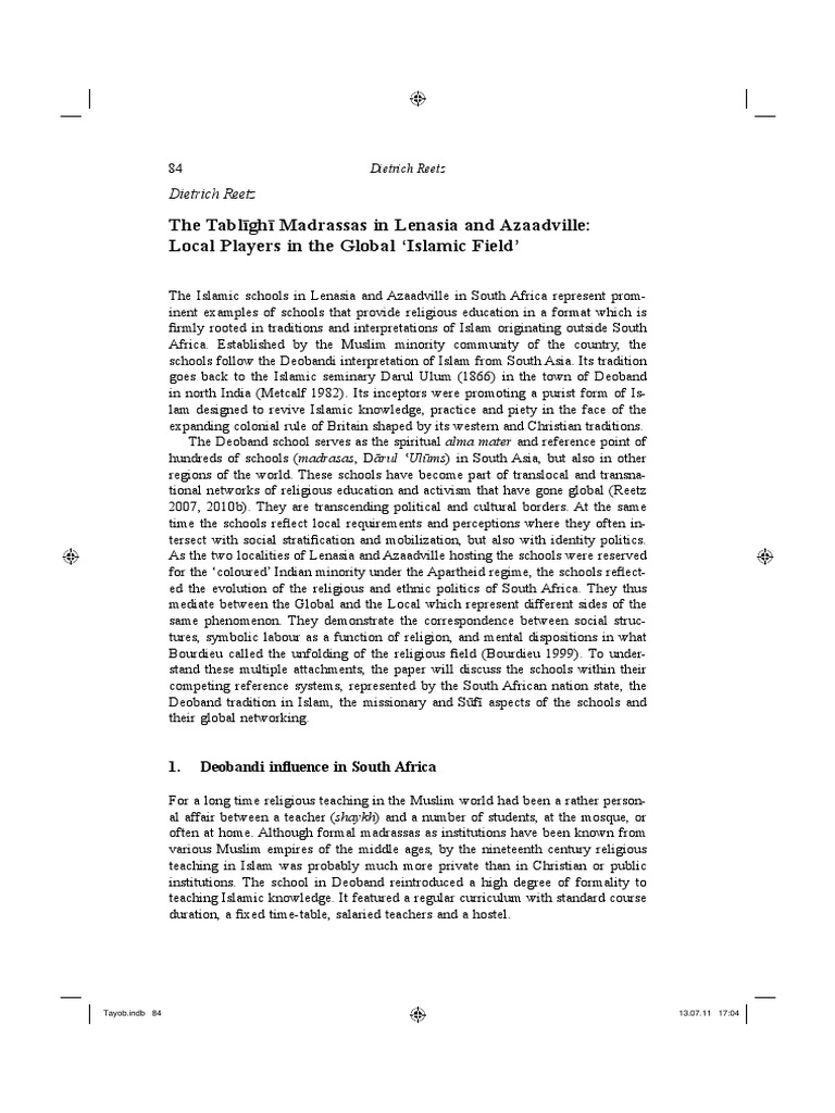 The Tablighi Madrasas in Lenasia and Azaadville PDF