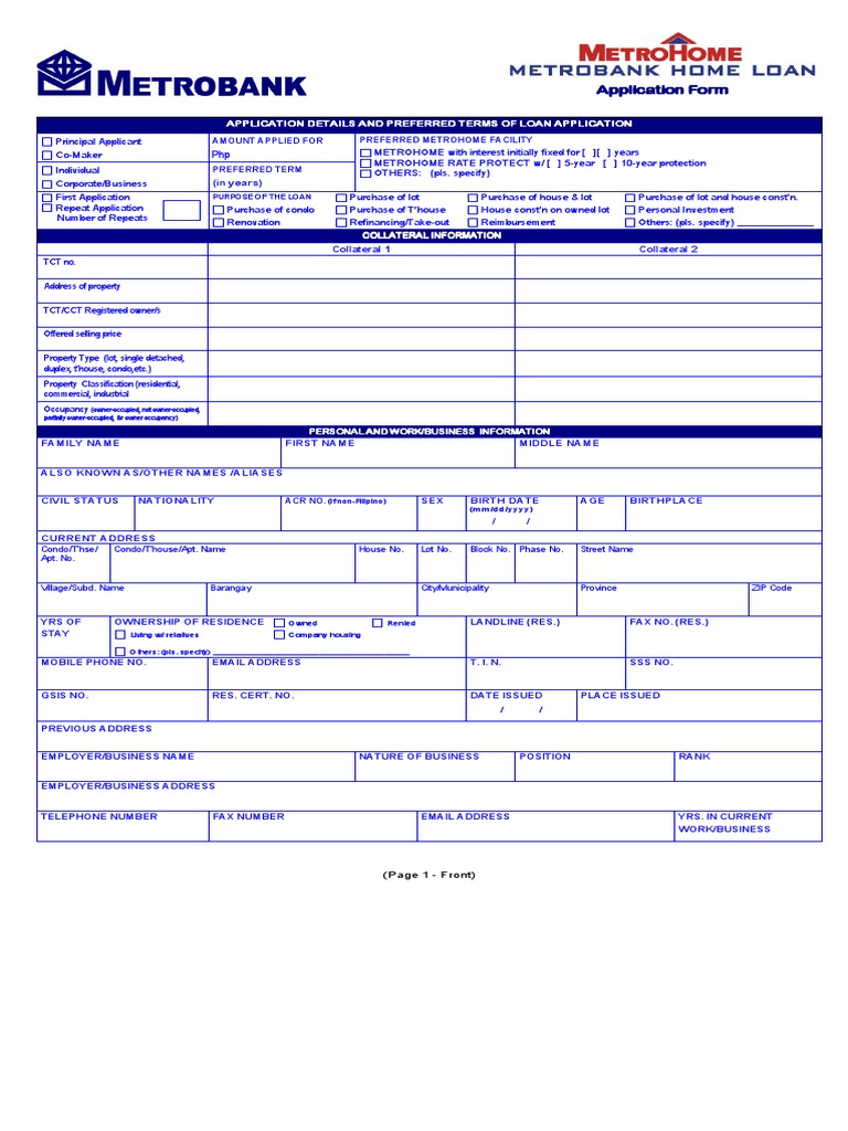 several liability for all charges, fees and other obligations necessary in processing my/our loan application. I/We agree that the application remains Metrobank’s property and the same may be used