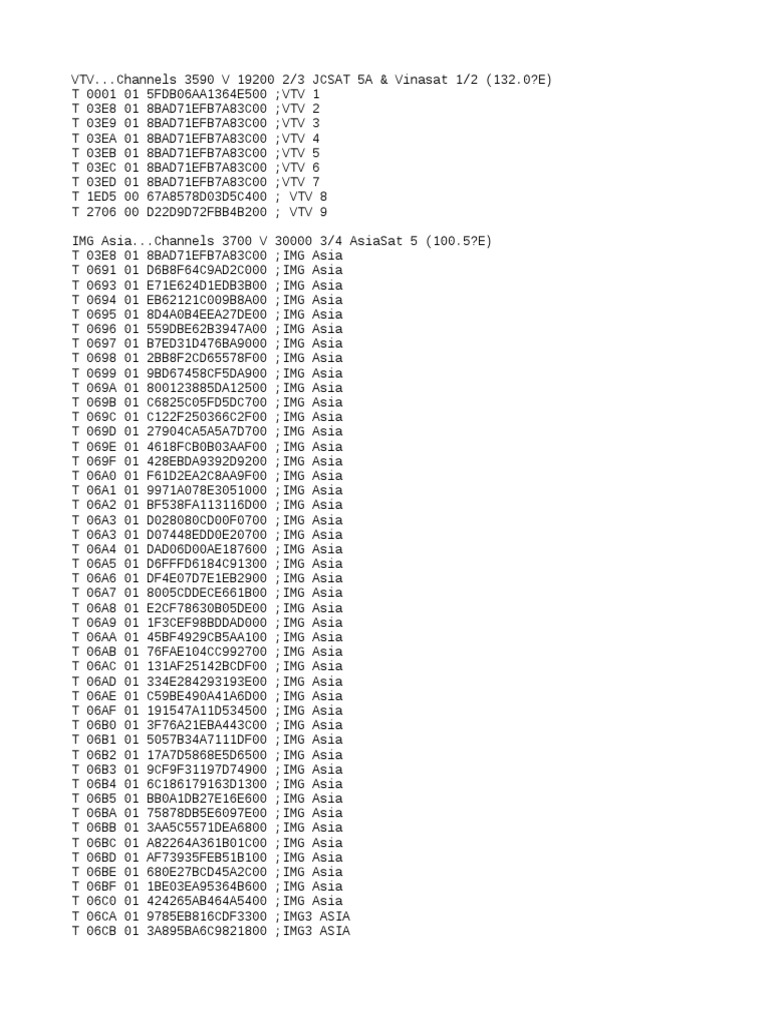 VTV...Channels 3590 V 19200 2/3 JCSAT 5A & Vinasat 1/2 (132.0?
