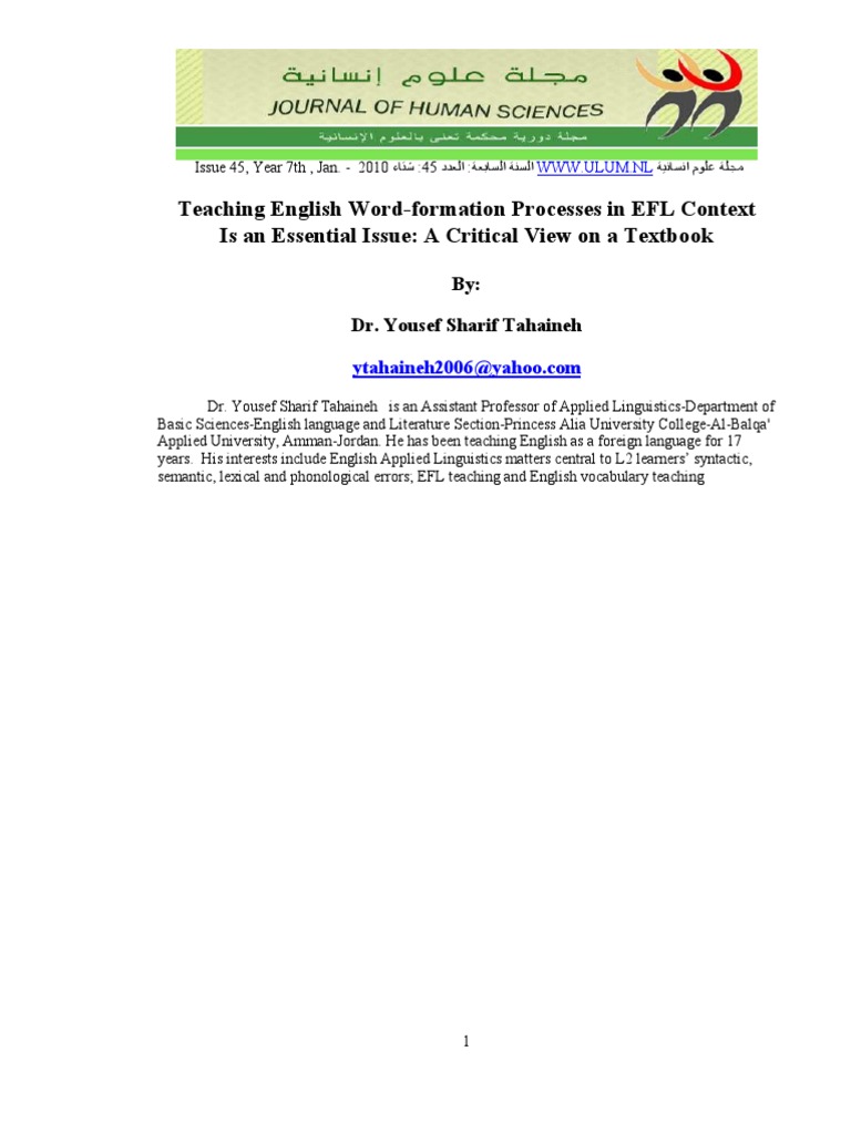 Teaching English Word-Formation Processes in EFL Context