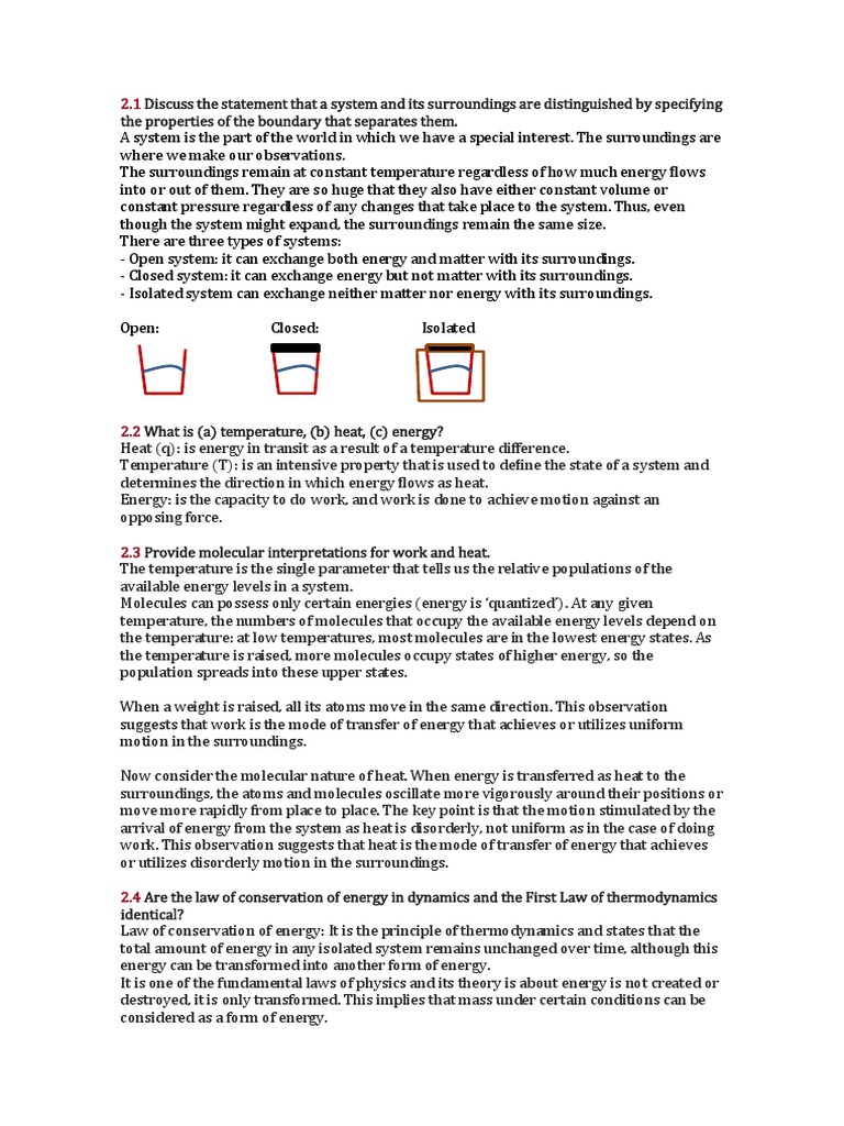 1 Discuss the statement that a system and its surroundings are distinguished by specifying