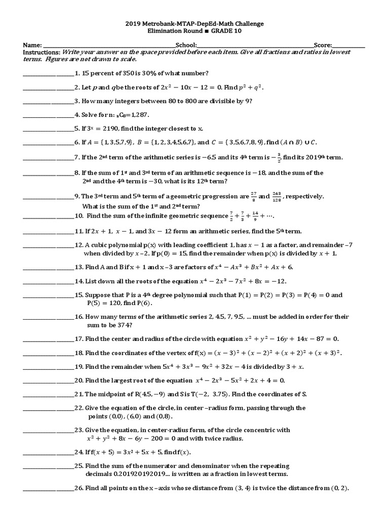 2019 Metrobank-MTAP-DepEd-Math Challenge