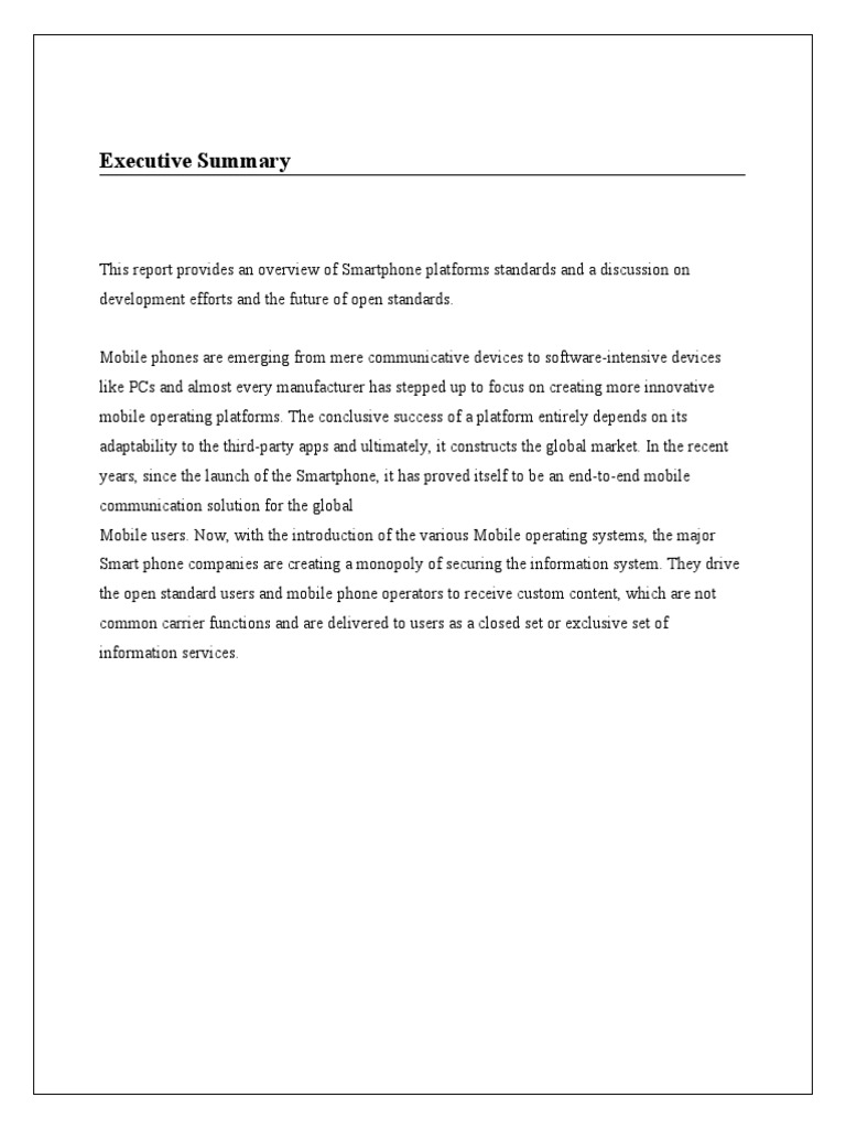 This report provides an overview of Smartphone platforms standards and a discussion on
