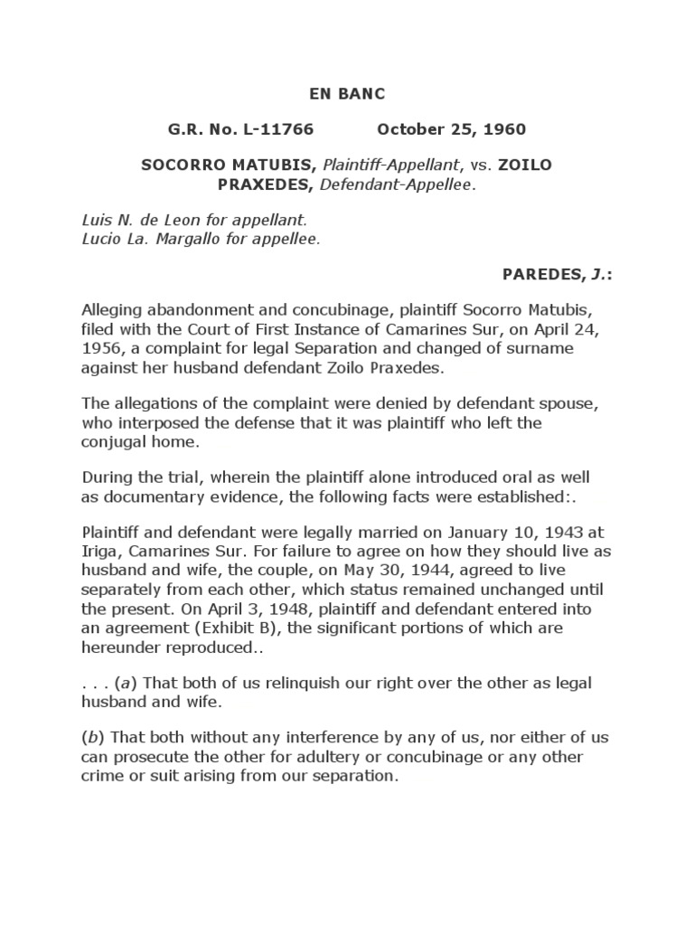 Alleging abandonment and concubinage, plaintiff Socorro Matubis,