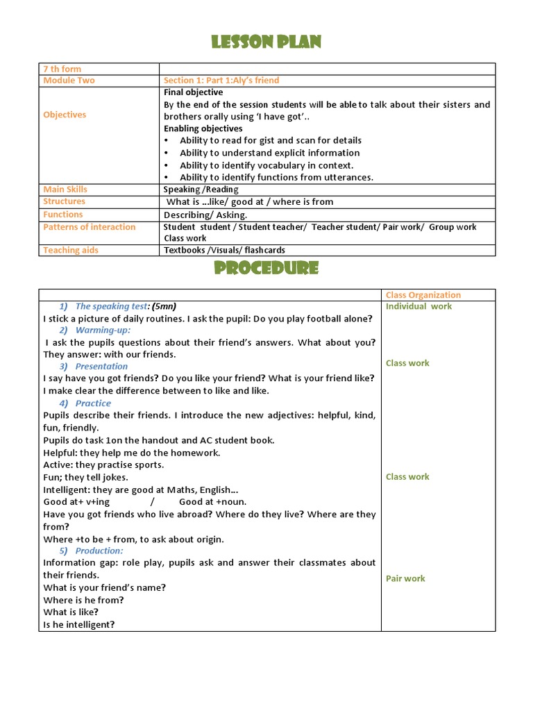 Pupils describe their friends. I introduce the new adjectives: helpful, kind,