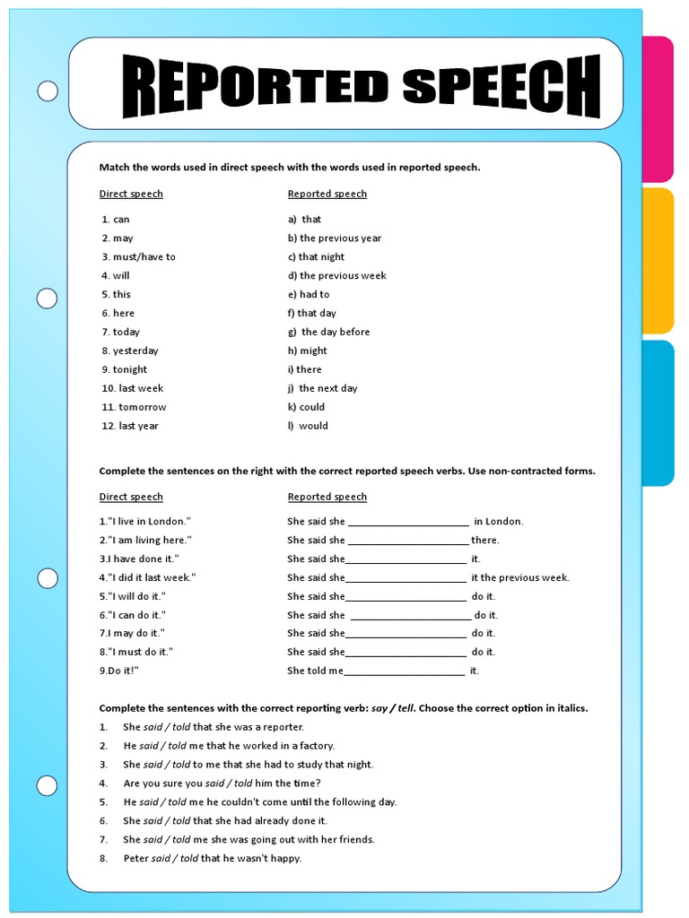 Complete the sentences on the right with the correct reported speech verbs. Use non-contracted forms.