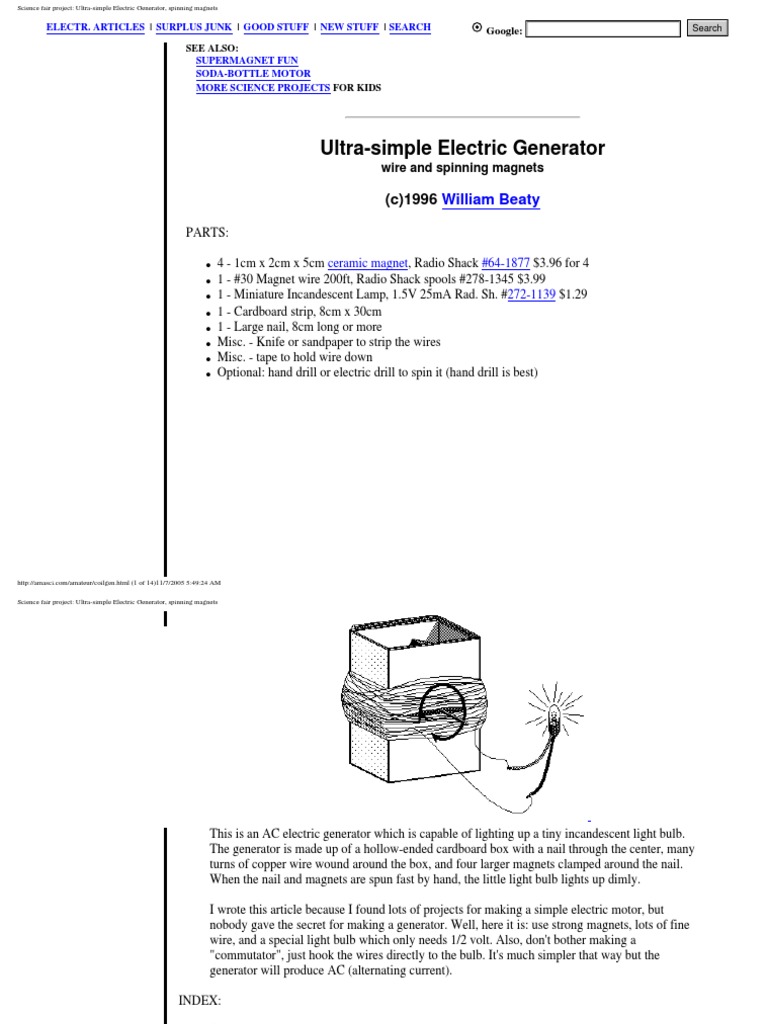 Science fair project: Ultra-simple Electric Generator, spinning magnets