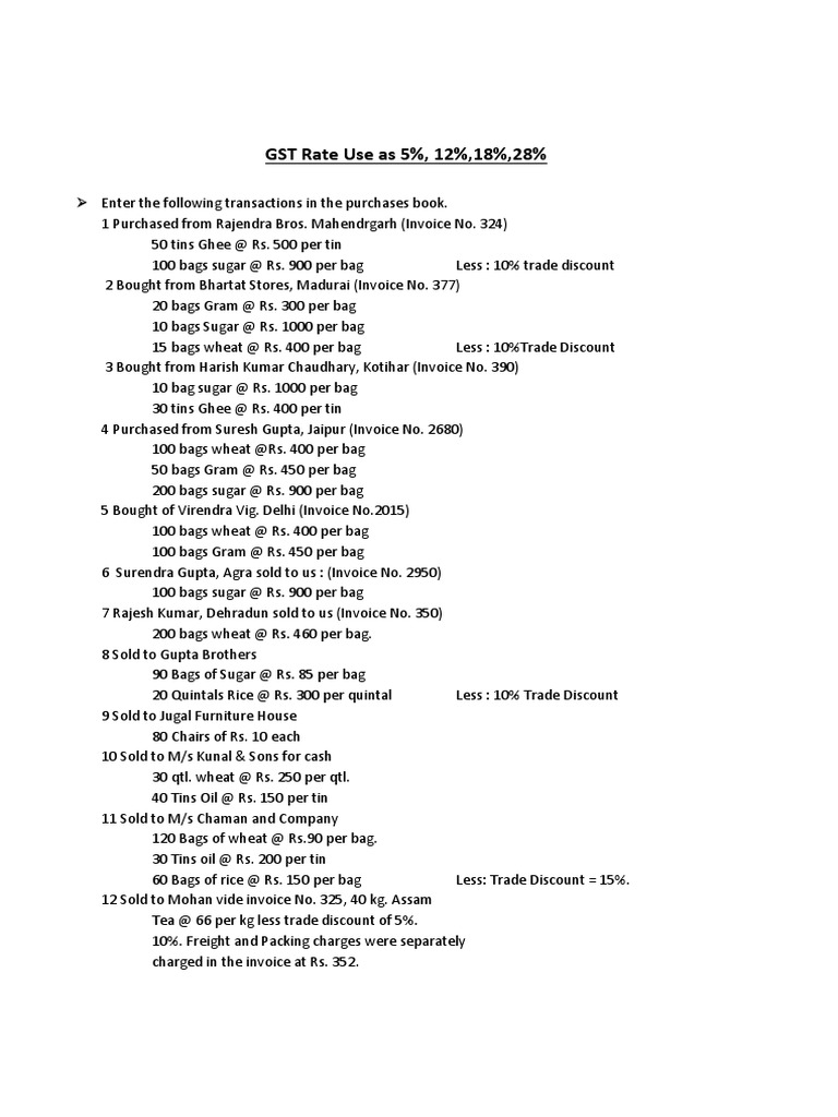 GST Rate Use as 5%, 12%,18%,28%