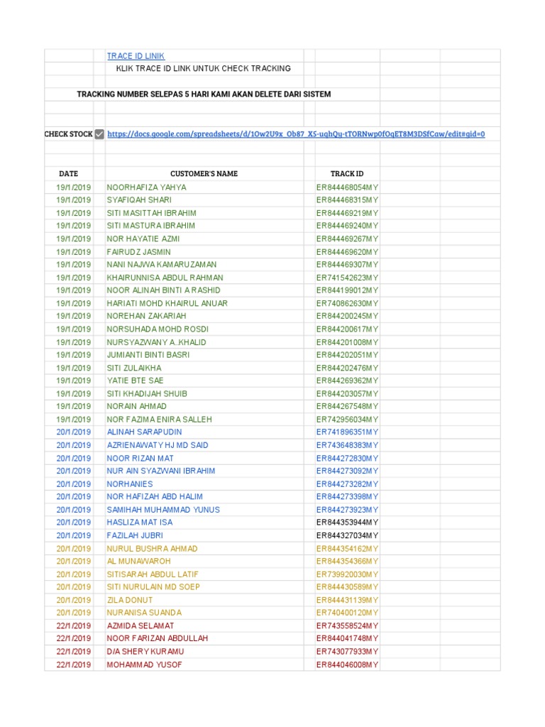 TRACKING NUMBER SELEPAS 5 HARI KAMI AKAN DELETE DARI SISTEM