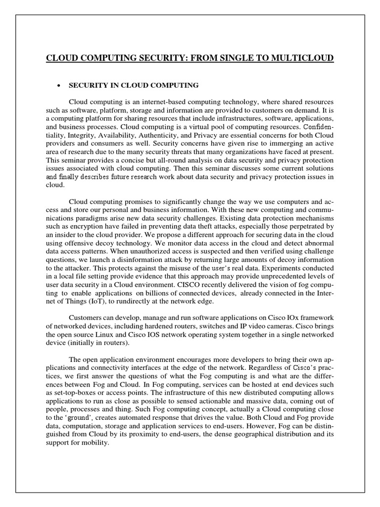 issues associated with cloud computing. Then this seminar discusses some current solutions