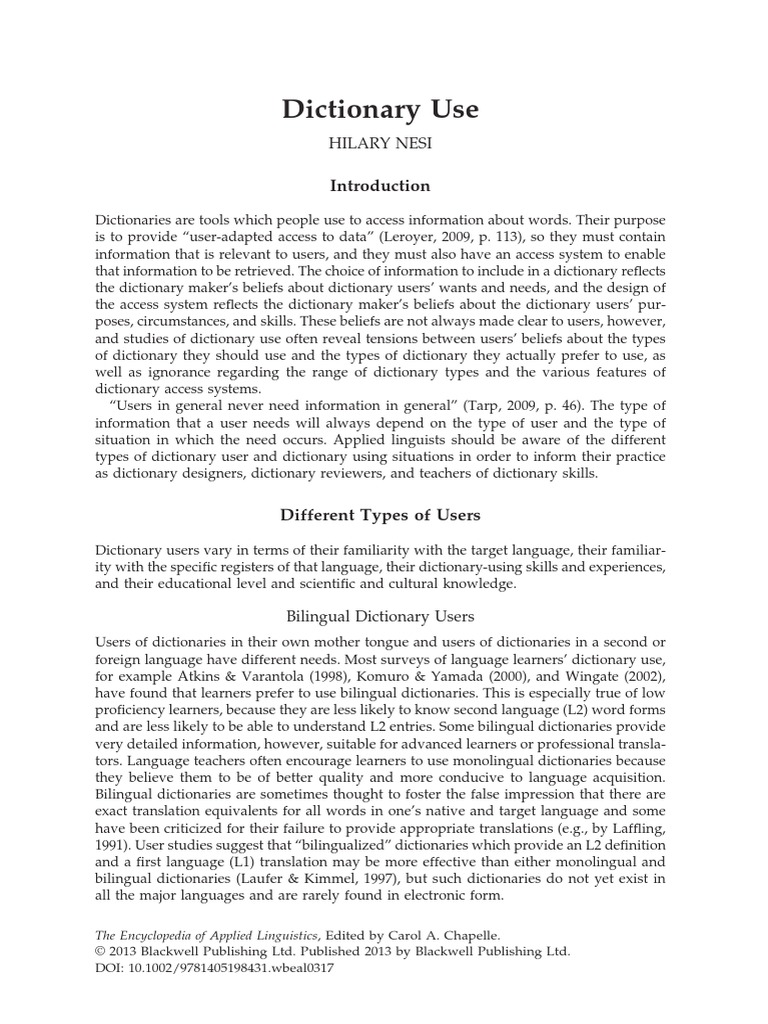 Hartmann (Ed.), Lexicography: Critical concepts (pp. 394–412). London, England: Routledge.