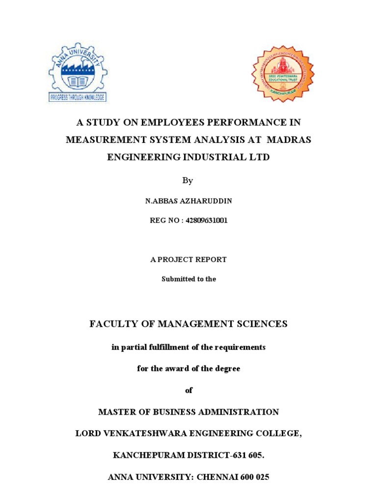 IN MEASUREMENT SYSTEMS ANALYSIS AT MADRAS INDUSTRIAL
