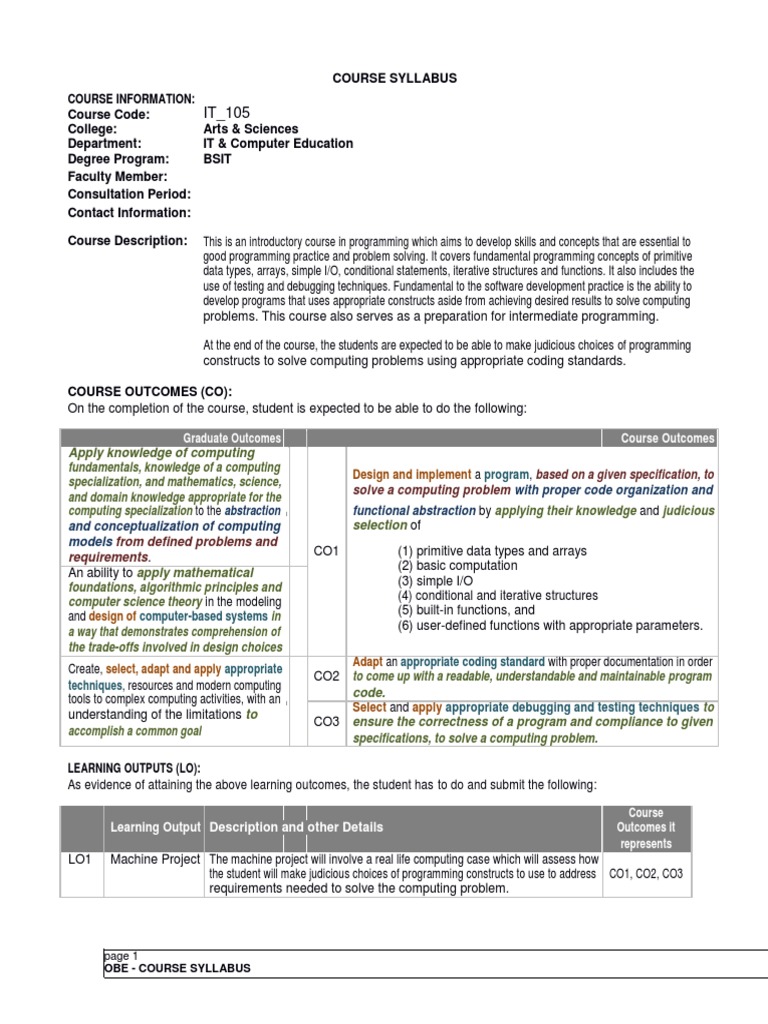 Course Description: This is an introductory course in programming which aims to develop skills and concepts that are essential to