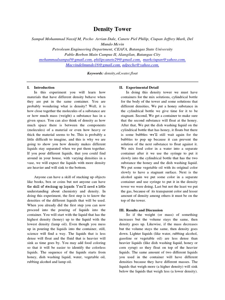 doing this experiment, the first step is to know the amount of density among others it must be on the