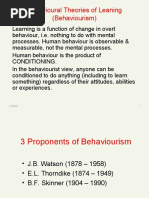 traditional behaviourism), promised (imagined incentives) and vicarious (seeing and