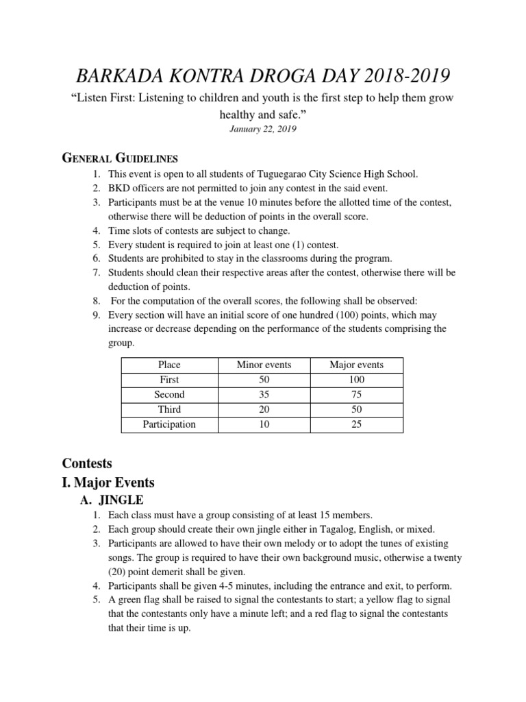2. The coverage of the Quiz Bee are as follows: (1) History of Drugs (2) Current Events